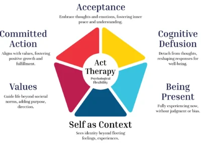 Η ACT αναπτύχθηκε ακριβώς για να αντιμετωπίσει αυτό το μοτίβο. Αντί να σε διδάξει να σκέφτεσαι πιο θετικά ή να εξαλείψεις το άγχος, σε βοηθά να χτίσεις μια διαφορετική σχέση με τον εσωτερικό σου κόσμο — μια σχέση βασισμένη στην επίγνωση, την αποδοχή και την ηθελημένη δράση.